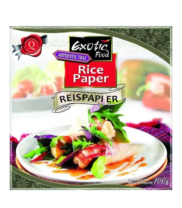 Scopri l’autentica Carta di Riso Thai da Exotic Food, ora disponibile nella versione più grande da 22 cm di diametro. Perfetta per avvolgere ingredienti abbondanti, è ideale per creare deliziosi involtini primavera e altri piatti asiatici. La dimensione più ampia permette di utilizzare ingredienti voluminosi come verdure fresche, gamberi e carne. Semplicissima da preparare: basta immergerla in acqua tiepida per pochi secondi per ottenere una consistenza morbida e pronta all’uso. Questa carta di riso è leggera, priva di glutine, e mantiene intatti i sapori degli ingredienti senza coprirli. Ideale per piatti sani e gustosi, perfetti per ogni occasione.