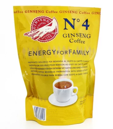 Ingredienti: Zucchero, sciroppo di glucosio solido, grassi vegetali idrogenti, caffè solubile 9%, caseinato di sodio, emulsionante E471, antiossidante E340, antiagglomerante E554, estratto di ginseng 0.3%
