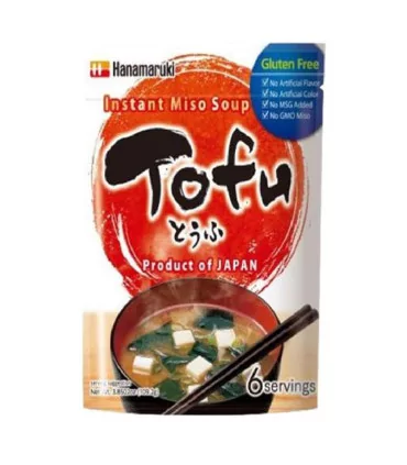 Ingredienti: Base della zuppa: Pasta di soia (63%) (acqua, fagioli di soia, riso, sale), acqua, alcool, estratto di pesce (acqua, estratto di pesce, sale, estratto di lievito), sale, condimento fermentato (liquido di riso fermentato, glucosio, sciroppo di glucosio e fruttosio, sciroppo di glucosio, zucchero, alcool, sale), polvere di tonno Skipjack (pesce), estratto di lievito, zucchero, glucosio.
