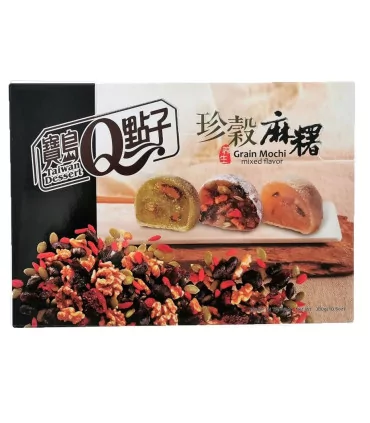 Ingredienti: Maltosio, riso glutinoso, zucchero, stabilizzante E1442, tè verde in polvere, soia nera, semi di zucca, bacca do goji, longan secca, giuggiole rosse, noce, conservanti E200.