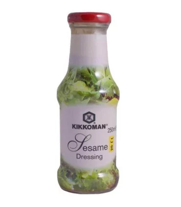 Acqua, Olio vegetale, Zucchero, Salsa id soia (acqua, semi di soia, frumento, sale), Aceto di alcol, Sesamo 65%, Olio di sesamo 6%, Estratto di lievito, Sale, Sciroppo di zucchero caramellato, Spezie ( contiene senape), addesanti (E415).