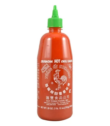 Originale Salsa Sriracha, è prodotta in California, negli USA. È deliziosa con zuppa o brodo (pho), hamburger, etc… Si utilizzato anche nella cucina giapponese per le tartare di salmone crudo, spicy maki e altre ricette dove viene aggiunto ad altre salse per dare un tocco di piccante leggero. Ottimo anche da aggiungere ai noodles in brodo caldo.