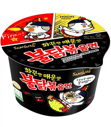 Noodle (75,8%): Farina di frumento (42%), amido di tapioca (18%), olio di palma (13%), glutine di frumento, sale, olio di soia, regolatore di acidità [carbonato di potassio (E501), carbonato di sodio (E500), fosfato di sodio bibasico (E339), polifosfato di sodio (E452), pirofosfato di sodio (E450), olio citrico al gusto di tè verde, colore [riboflavina (E101)]. Zuppa (23,3%): Acqua, aroma di pollo artificiale in polvere, zucchero bianco, salsa di soia, pepe rosso in polvere, olio di fagioli di soia, cipolla in polvere, aglio in polvere, sale, amido di tapioca, estratto di lievito. Fiocco (0,9%): Sesamo arrostito, Laver essiccato.